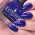 Deep violet base with glowy blue multichrome flakes and purple iridescent flakes.